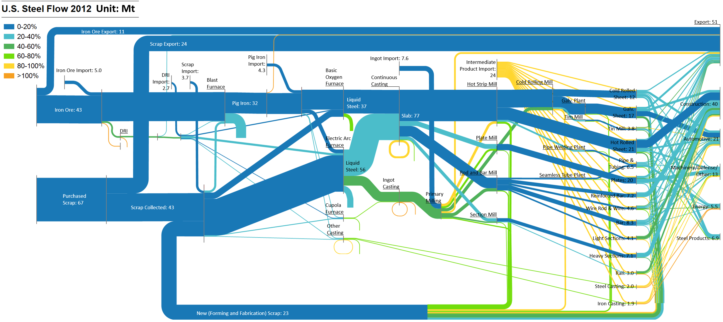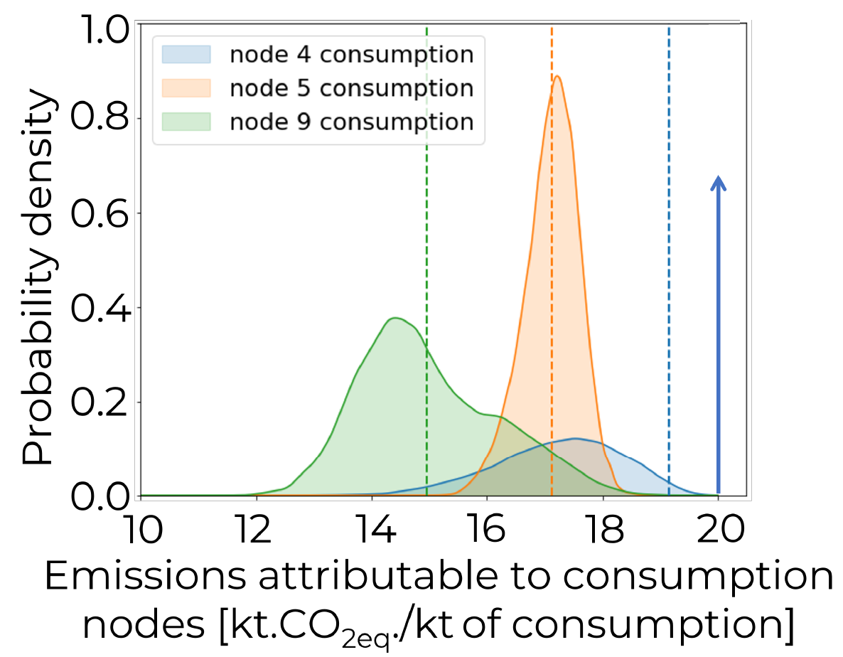 Material flow analyses (MFAs) provide insight into supply chain level opportunities for resource efficiency. MFAs can be represented as networks with nodes that represent materials, processes, sectors or locations. MFA network structural uncertainty (i.e., the existence or absence of flows between nodes) is pervasive and can undermine the reliability of the flow predictions. This article investigates MFA network structure uncertainty by proposing candidate node-and-flow structures and using Bayesian model selection to identify the most suitable structures and Bayesian model averaging to quantify the parametric mass flow uncertainty. The results of this holistic approach to MFA uncertainty are used in conjunction with the input-output (I/O) method to make risk-informed resource efficiency recommendations. These techniques are demonstrated using a case study on the U.S. steel sector where 16 candidate structures are considered. Model selection highlights 2 networks as most probable based on data collected from the United States Geological Survey and the World Steel Association. Using the I/O method, we then show that the construction sector accounts for the greatest mean share of domestic U.S. steel industry emissions while the automotive and steel products sectors have the highest mean emissions per unit of steel used in the end-use sectors. The uncertainty in the results is used to analyze which end-use sector should be the focus of demand reduction efforts under different appetites for risk. This article’s methods generate holistic and transparent MFA uncertainty that account for structural uncertainty, enabling decisions whose outcomes are more robust to the uncertainty.