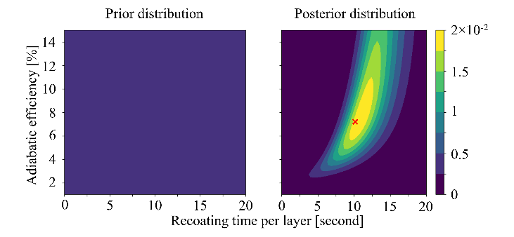 Informed decision-making for sustainable manufacturing requires accurate manufacturing process environmental impact models with uncertainty quantification (UQ). For emerging manufacturing technologies, there is often insufficient process data available to derive accurate data-driven models. This paper explores an alternative mechanistic modeling approach using easy-to-access data from a given machine to perform Bayesian inference and reduce the uncertainty of model parameters. First, we derive mechanistic models of the cumulative energy demand (CED) for making aluminum (AlSi10) and nylon (PA12) parts using laser powder bed fusion (L-PBF). Initial parametric uncertainty is assigned to the model inputs informed by literature reviews and interviews with industry experts. Second, we identify the most critical sources of uncertainty using variance-based global sensitivity analyses; therefore, reducing the dimension of the problem. For metal and polymer L-PBF, critical uncertainty is related to the adiabatic efficiency of the process (a measure of the efficiency with which the laser energy is used to fuse the powder) and the recoating time per layer between laser scans. Data pertinent to both of these parameters include the part geometry (height and volume) and total build time. Between three and eight data points on part geometry and build time were collected on two different L-PBF machines and Bayesian inference was performed to reduce the uncertainty of the adiabatic efficiency and recoating time per layer on each machine. This approach was validated by subsequently taking direct parameter measurements on these machines during operation. The delivered electricity uncertainty is reduced by 40-70% after performing inference, highlighting the potential to construct accurate energy and environmental impact models of manufacturing processes using small easy-to-access datasets without interfering with the operations of the manufacturing facility.
